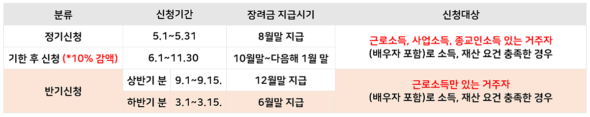 근로장려금 정기/반기 신청기간